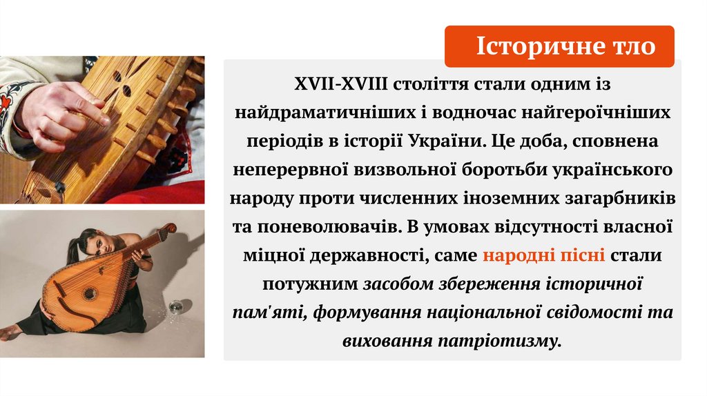 Пісні про боротьбу українців із іноземнимизагарбниками в ХVІІ-ХVІІІ століттях.