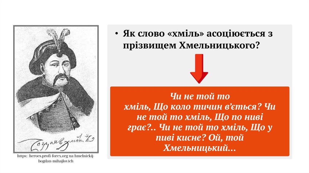 Паралелізм: хміль – Богдан Хмельницький («Чи не той то