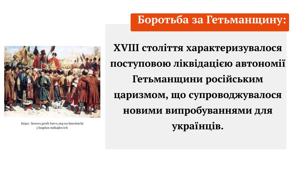 Боротьба за Гетьманщину:XVIII століття характеризувалося