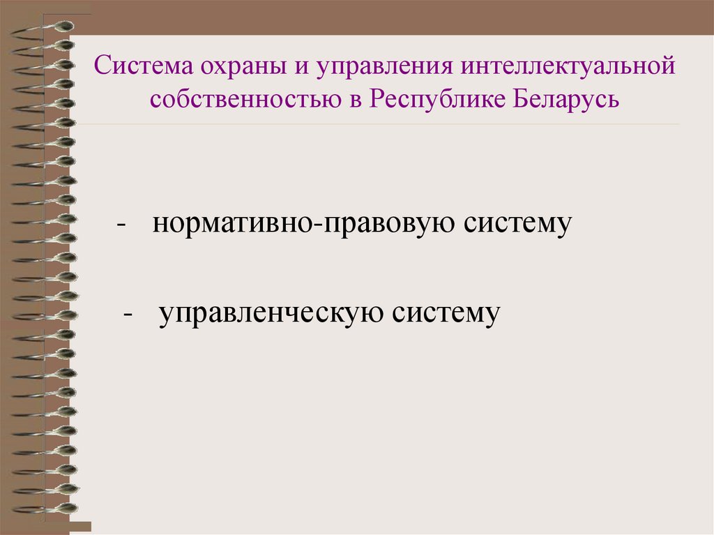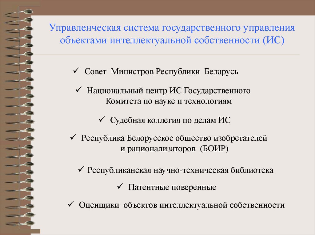 Система охраны и управления интеллектуальнойсобственностью в Республике Беларусь