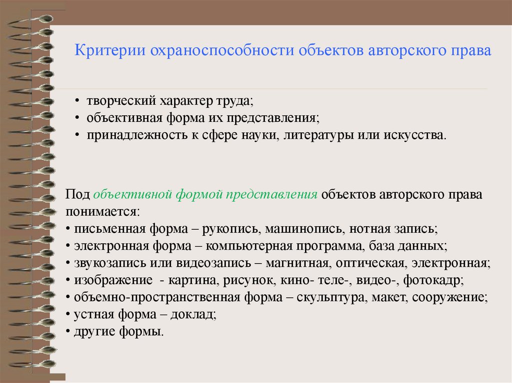 Критерии охраноспособности объектов авторского права• творческий характер труда;