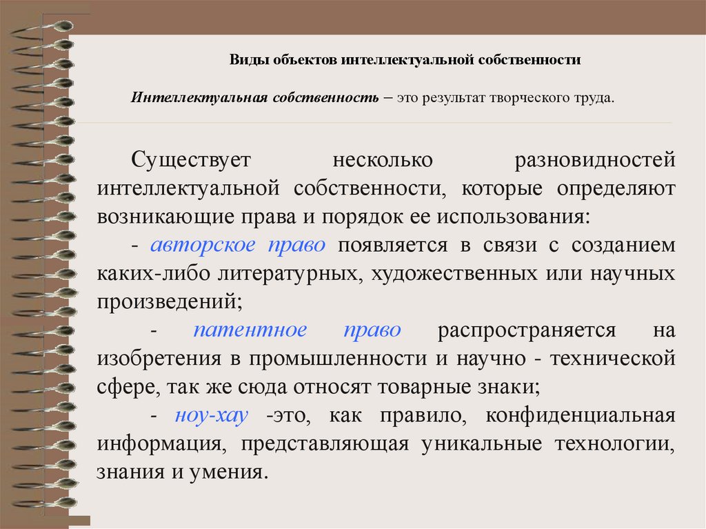 Виды объектов интеллектуальной собственностиИнтеллектуальная собственность — это результат творческого труда.