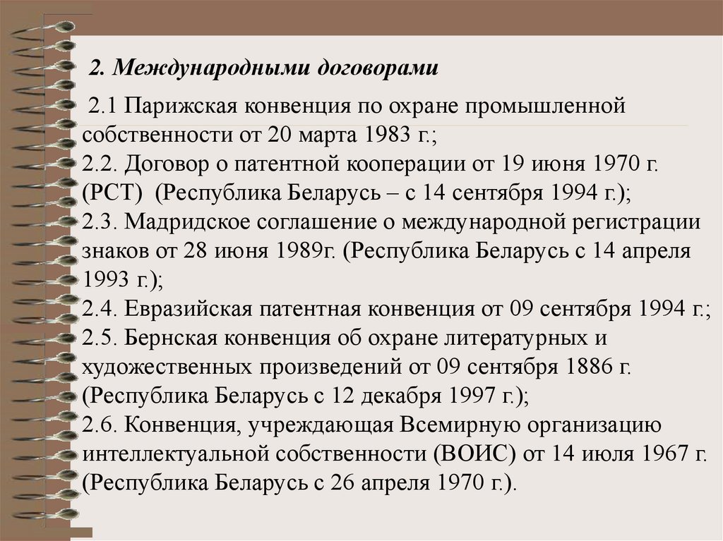 2. Международными договорами2.1 Парижская конвенция по охране промышленной