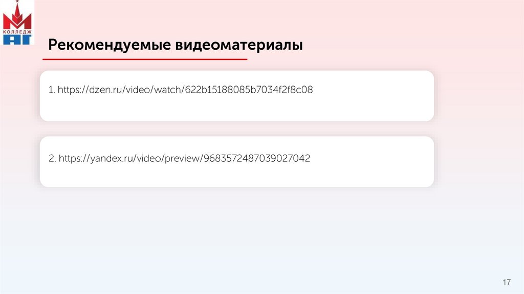 Рекомендуемые видеоматериалы1. https://dzen.ru/video/watch/622b15188085b7034f2f8c08