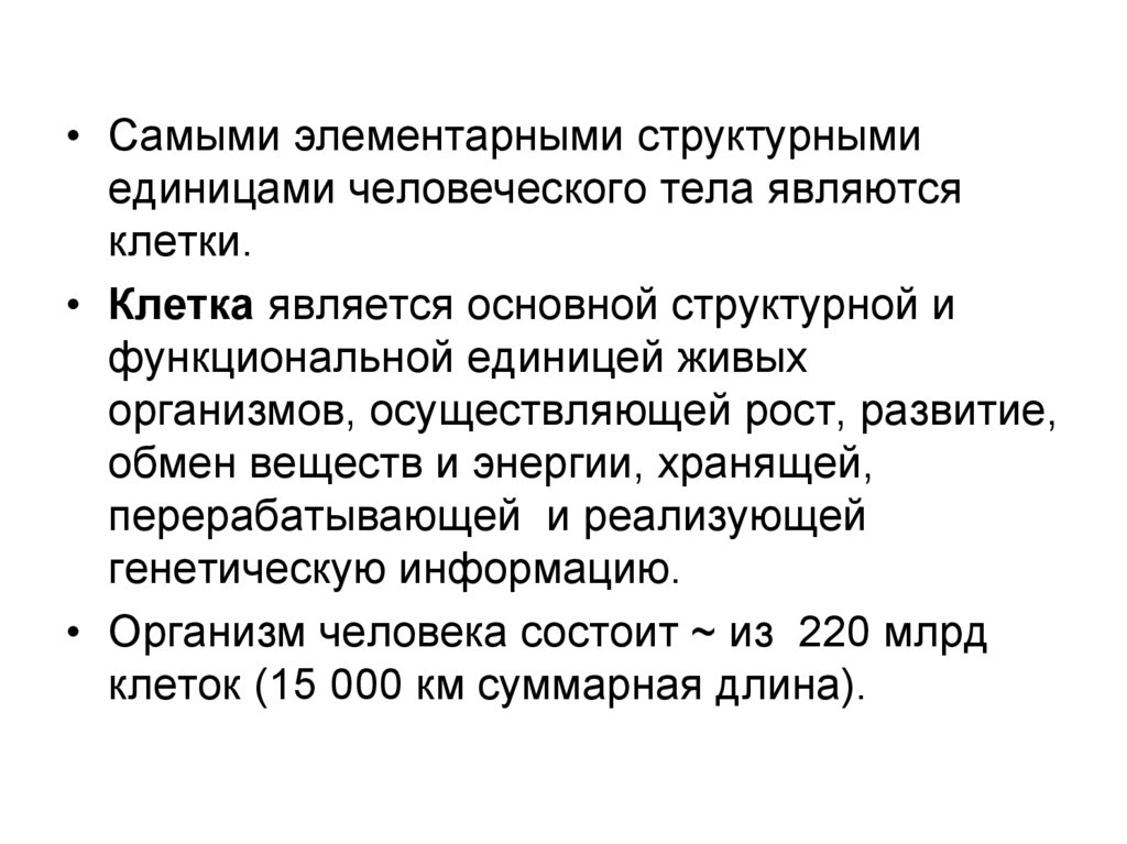 • Самыми элементарными структурнымиединицами человеческого тела являются