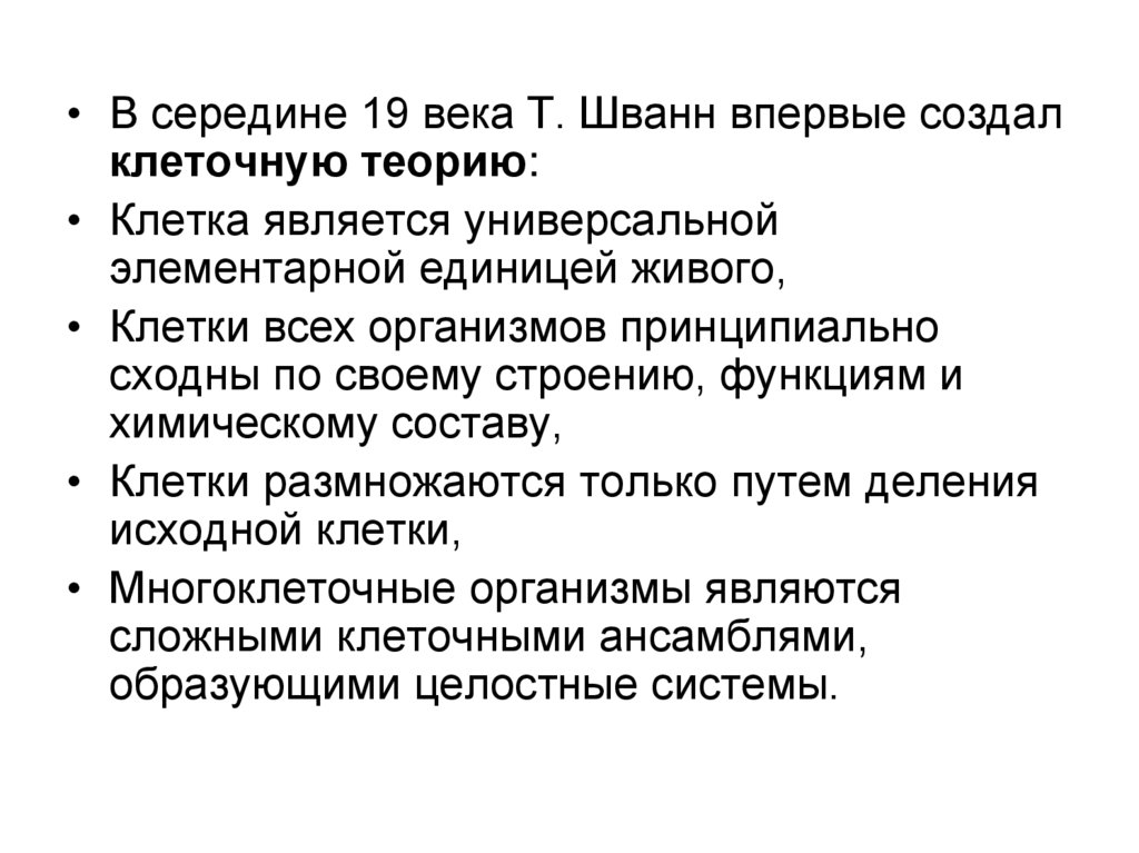 • В середине 19 века Т. Шванн впервые создалклеточную теорию:
