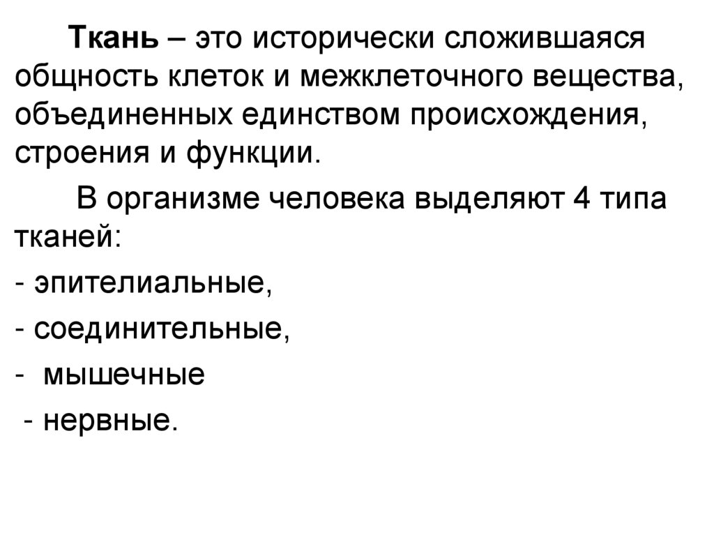Ткань – это исторически сложившаясяобщность клеток и межклеточного вещества,