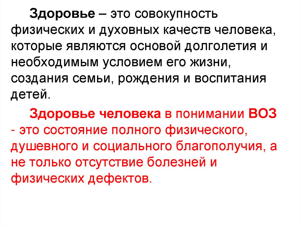 Здоровье – это совокупностьфизических и духовных качеств человека,