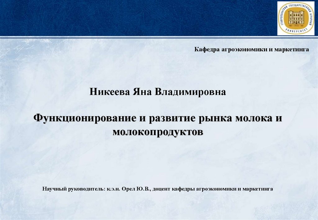 Кафедра агроэкономики и маркетингаНикеева Яна Владимировна