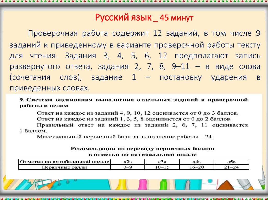 Русский язык _ 45 минутПроверочная работа содержит 12 заданий, в том числе 9