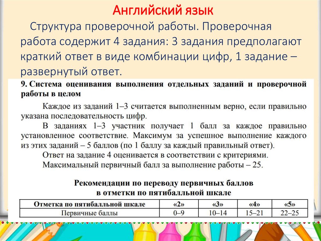 Английский языкСтруктура проверочной работы. Проверочная