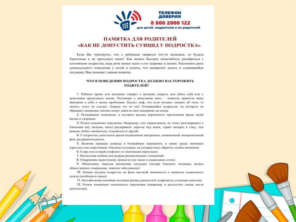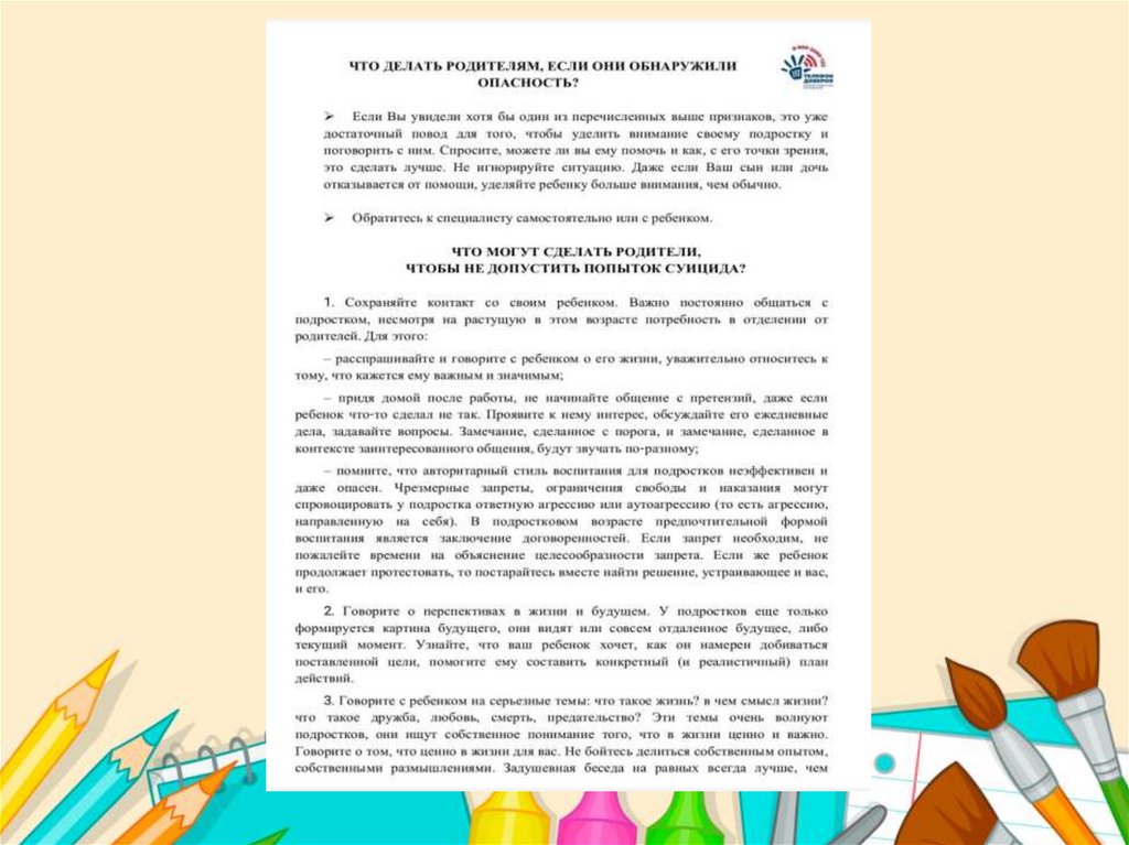 • Профилактика суицидального поведения/