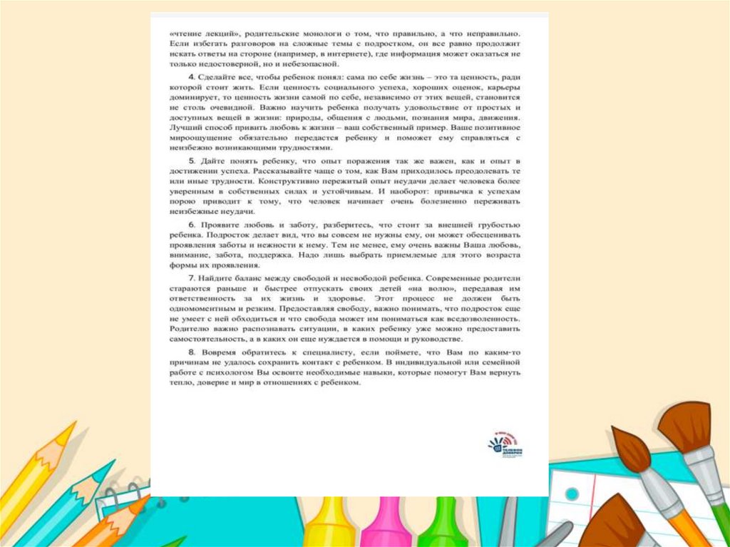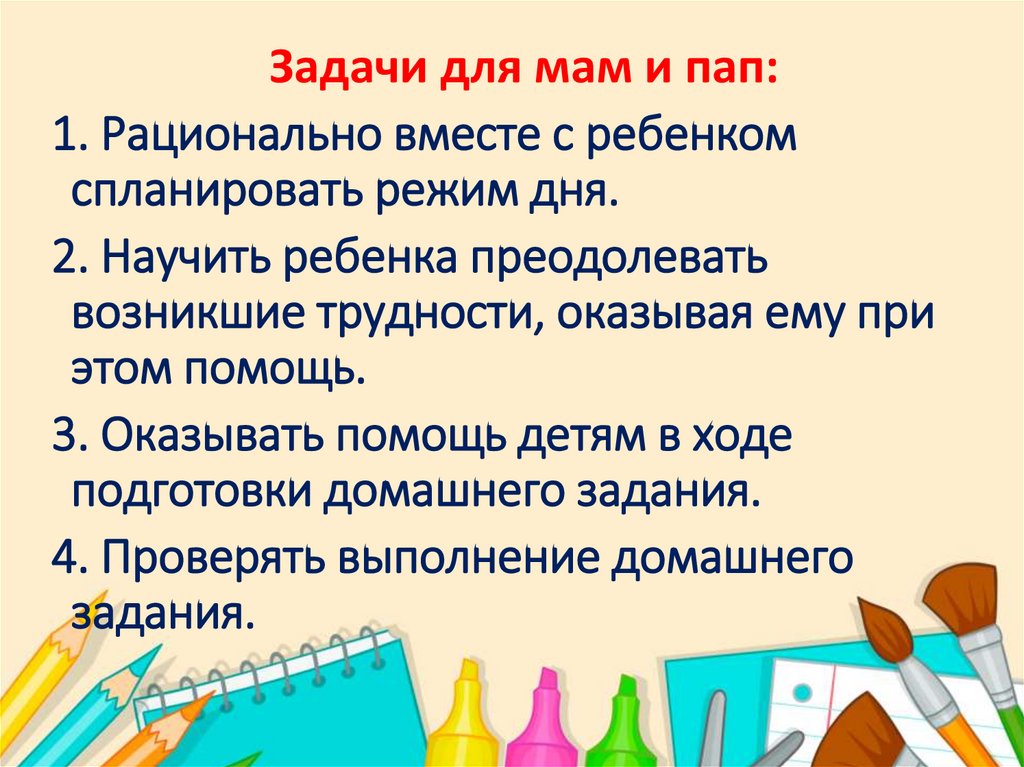 Задачи для мам и пап:1. Рационально вместе с ребенком