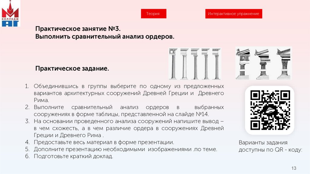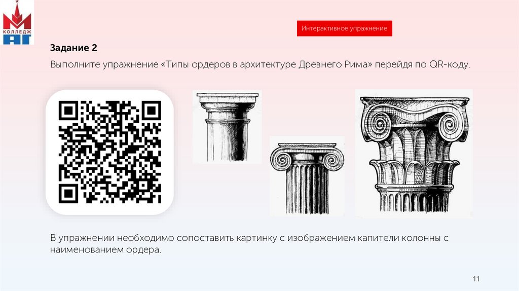 Выполните упражнение «Типы ордеров в архитектуре Древнего Рима» перейдя по QR-коду.