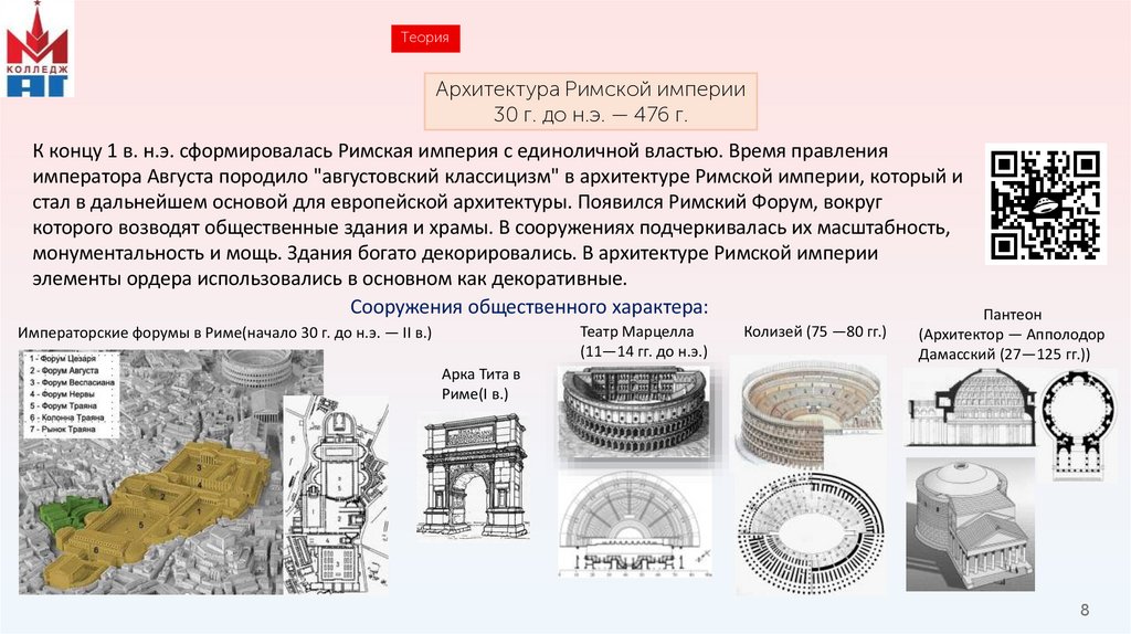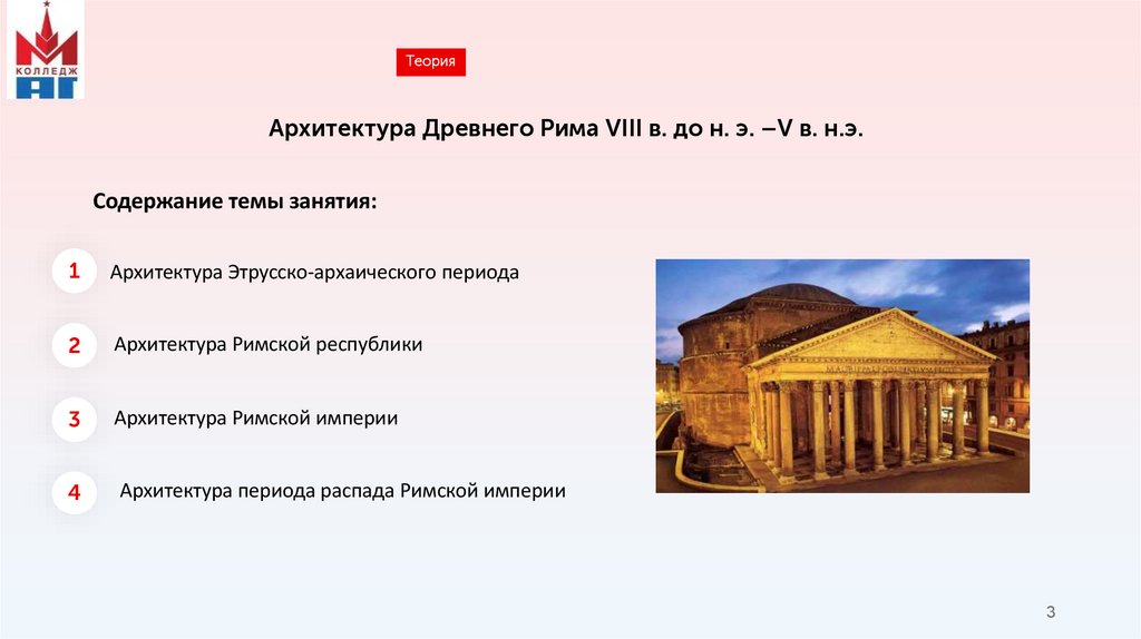 ТеорияАрхитектура Древнего Рима VIII в. до н. э. –V в. н.э.