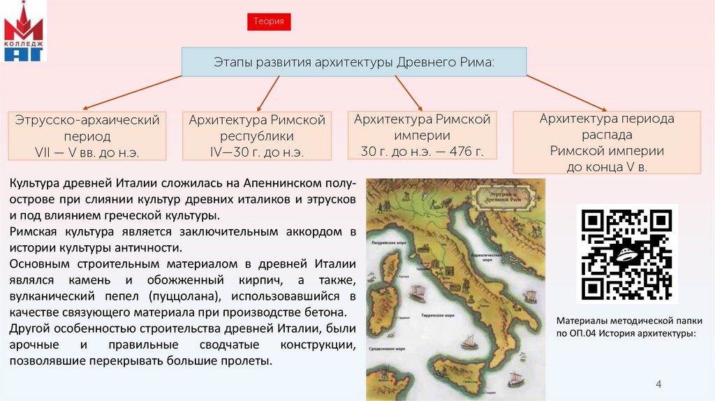 ТеорияЭтапы развития архитектуры Древнего Рима: