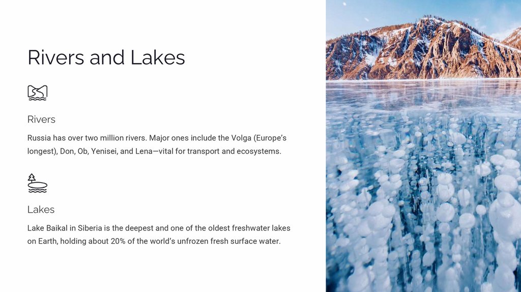 longest), Don, Ob, Yenisei, and Lena—vital for transport and ecosystems.