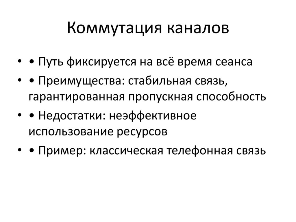 Коммутация каналов• • Путь фиксируется на всё время сеанса