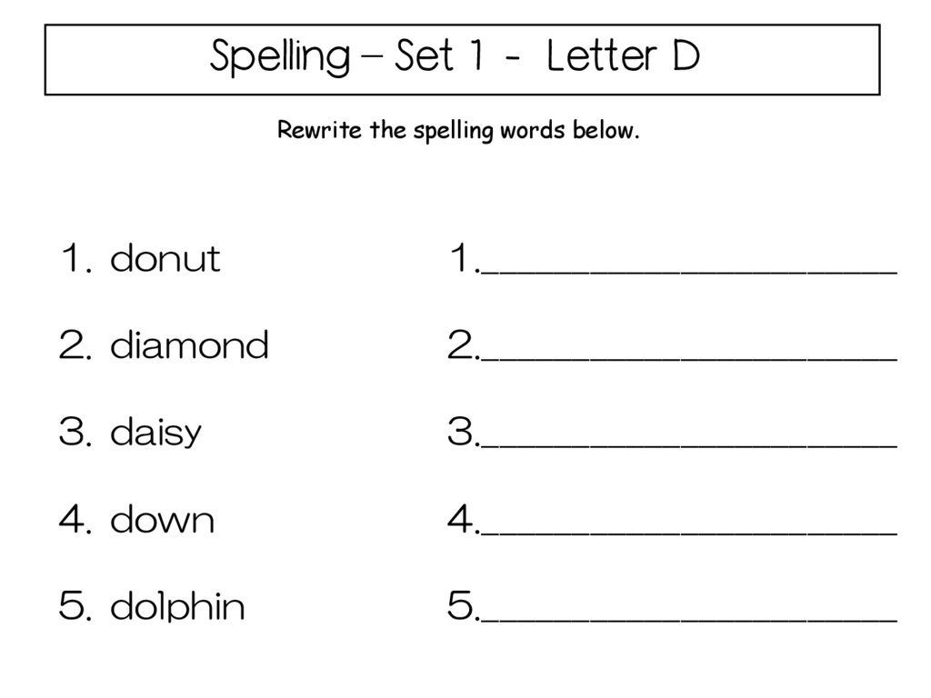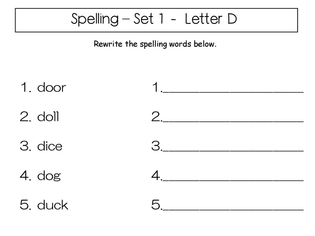 Spelling – Set 1 - Letter DRewrite the spelling words below.