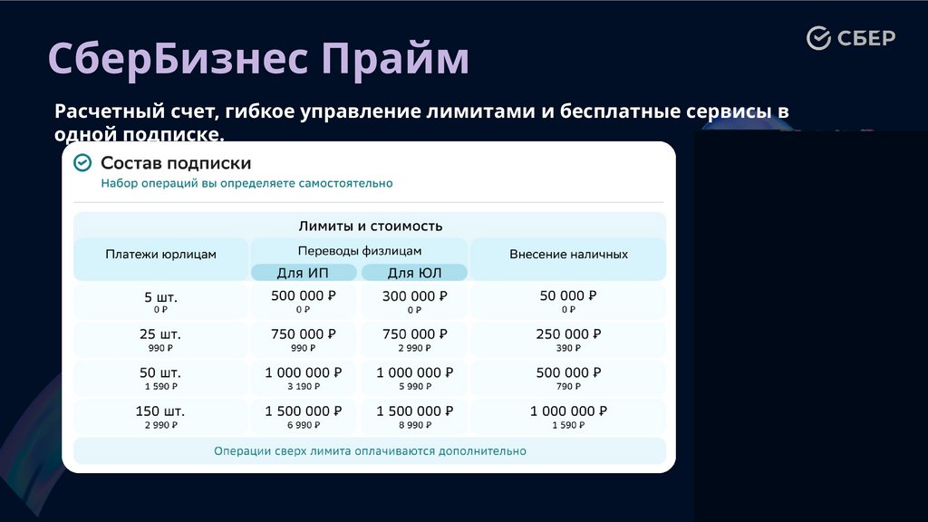 СберБизнес ПраймРасчетный счет, гибкое управление лимитами и бесплатные сервисы в