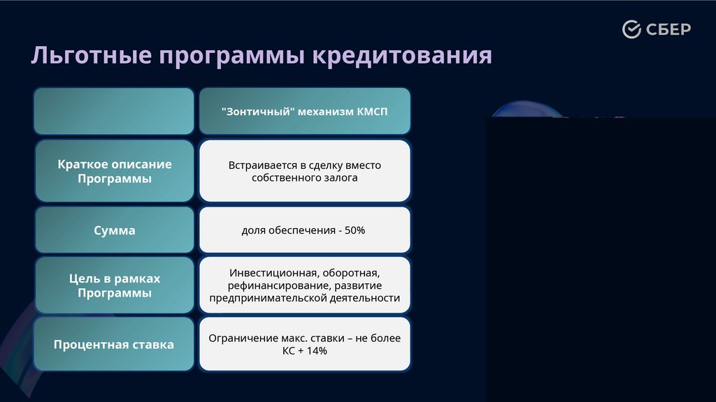 Льготные программы кредитования"Зонтичный" механизм КМСП