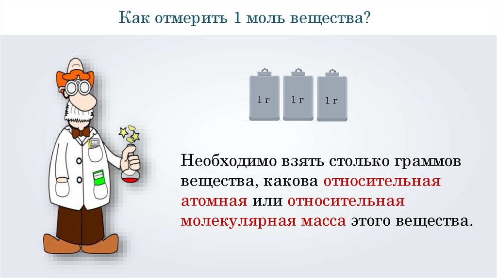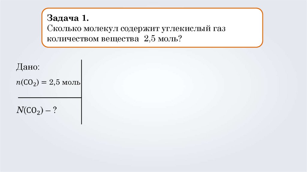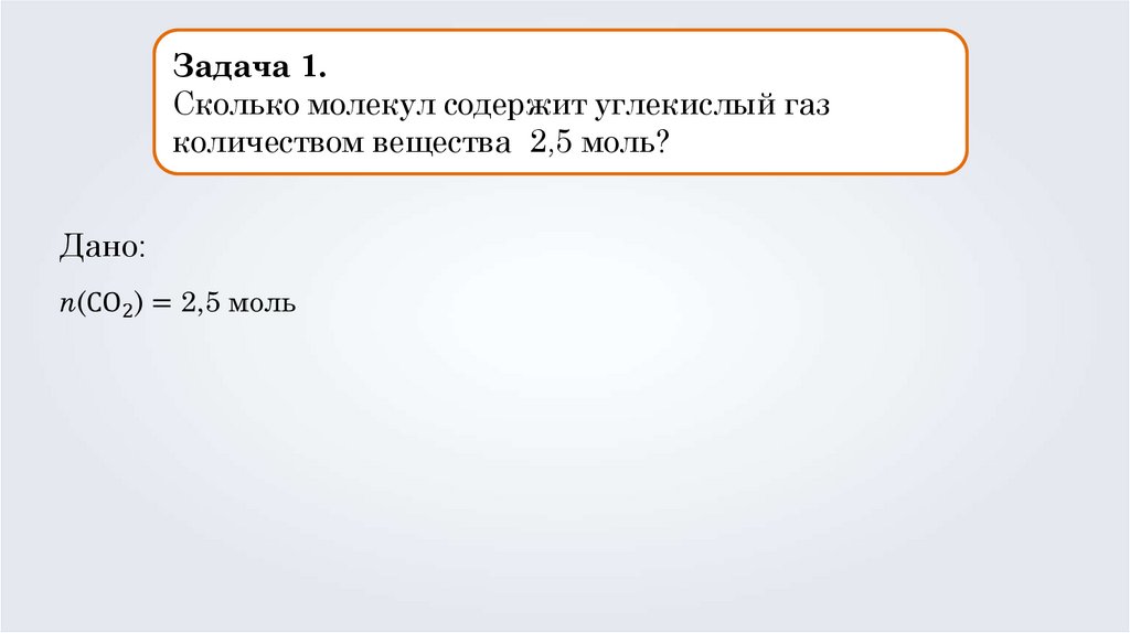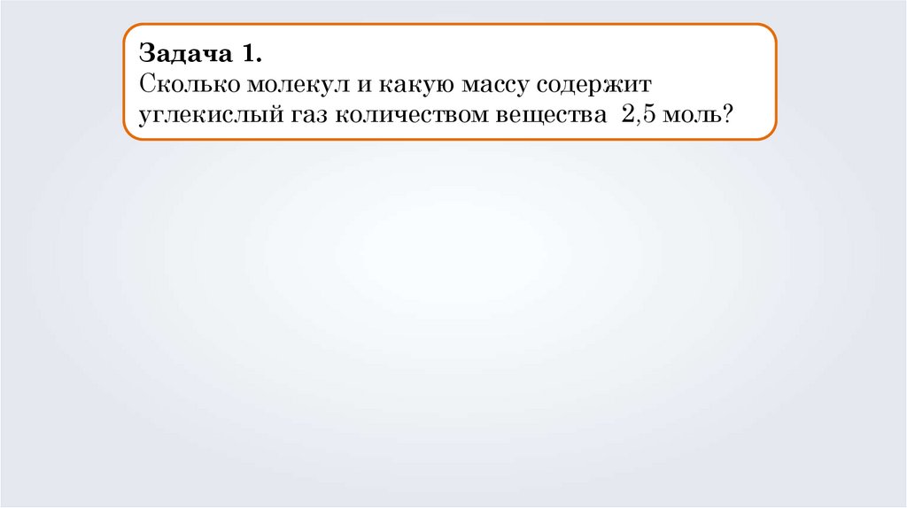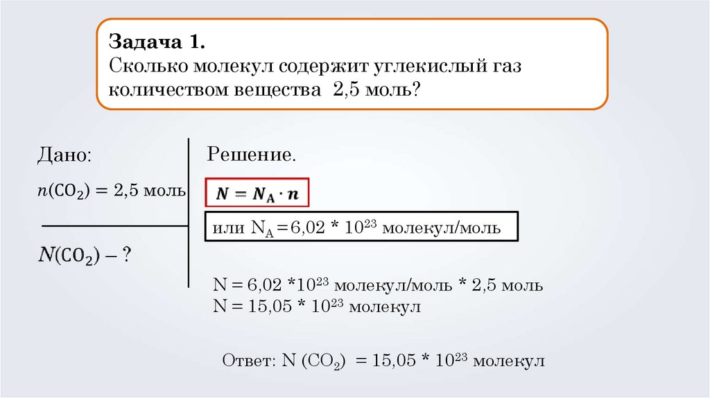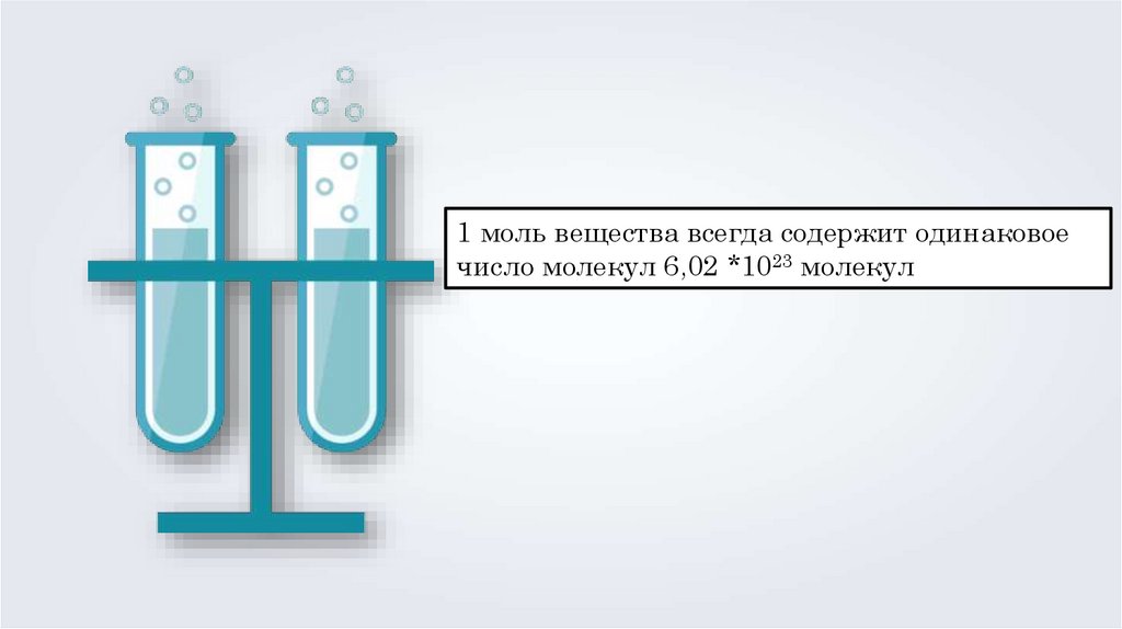 1 моль вещества всегда содержит одинаковоечисло молекул 6,02 *1023 молекул