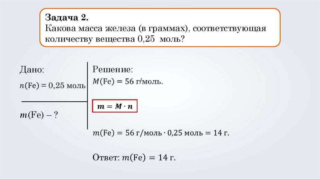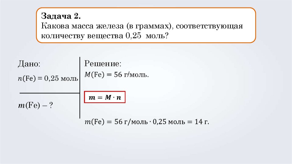 Задача 2.Какова масса железа (в граммах), соответствующая