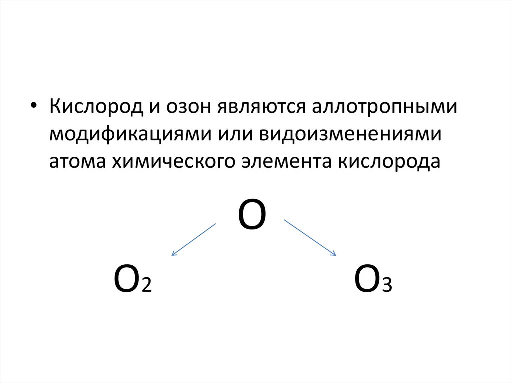 • Кислород и озон являются аллотропнымимодификациями или видоизменениями