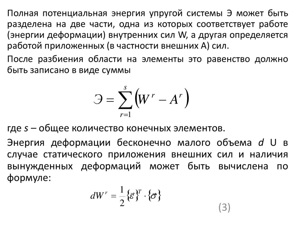 Полная потенциальная энергия упругой системы Э может бытьразделена на две части, одна из которых соответствует работе