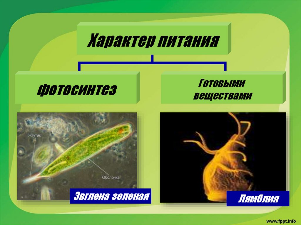 У эвглены зелёной тип питания -миксотрофный (на свету питается как