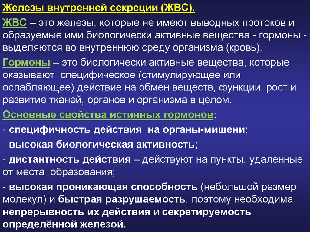 Основные свойства истинных гормонов: