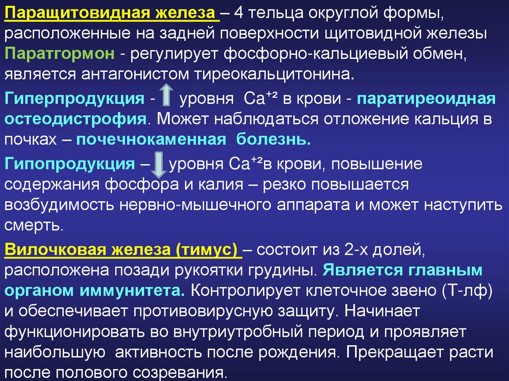 Паратгормон - регулирует фосфорно-кальциевый обмен,