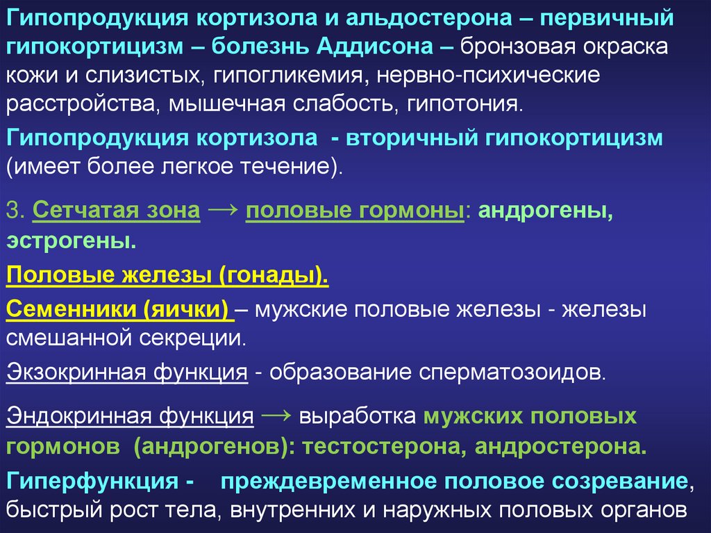 3. Сетчатая зона → половые гормоны: андрогены,
