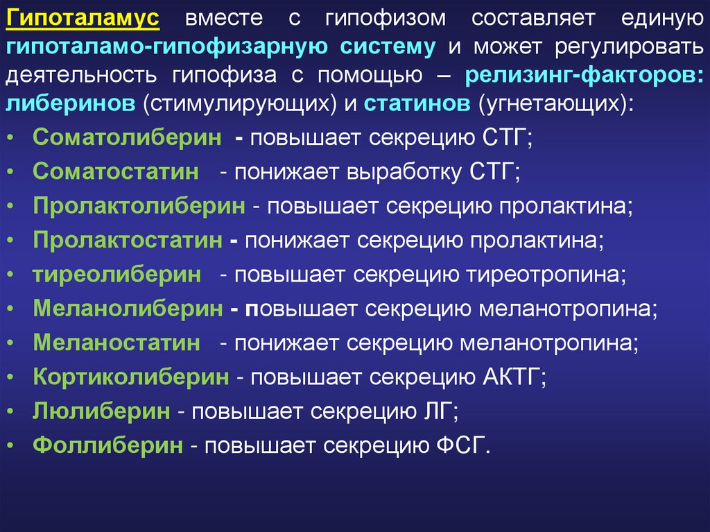 деятельность гипофиза с помощью – релизинг-факторов: