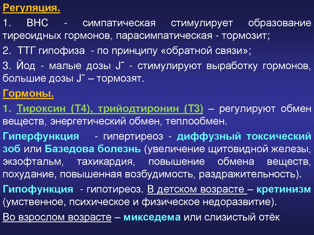 1. Тироксин (Т4), трийодтиронин (Т3) – регулируют обмен