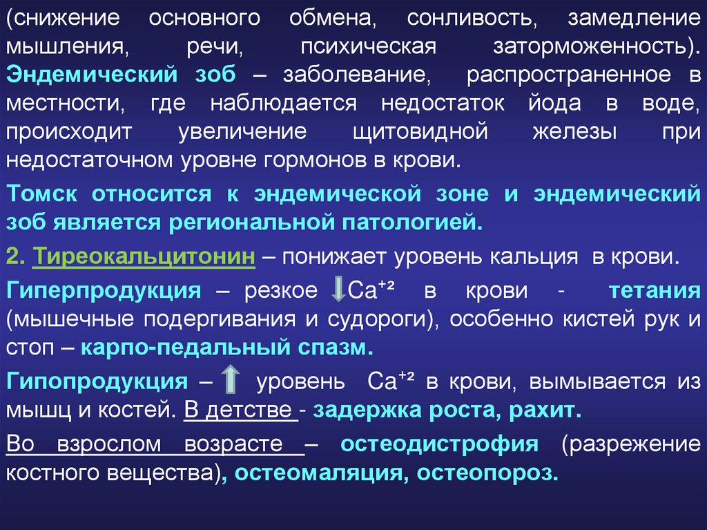 Гипопродукция – уровня Ca⁺²в крови, повышение