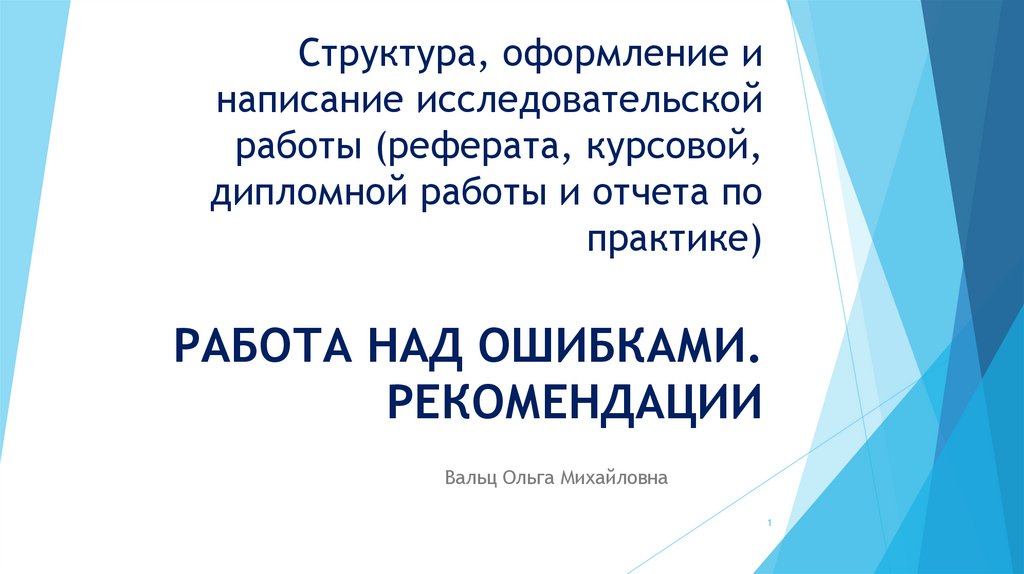 1. Структура, оформление и написание исследовательской работы (реферата, курсовой, дипломной работы и отчета по практике) РАБОТА