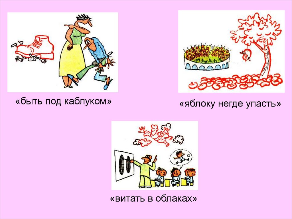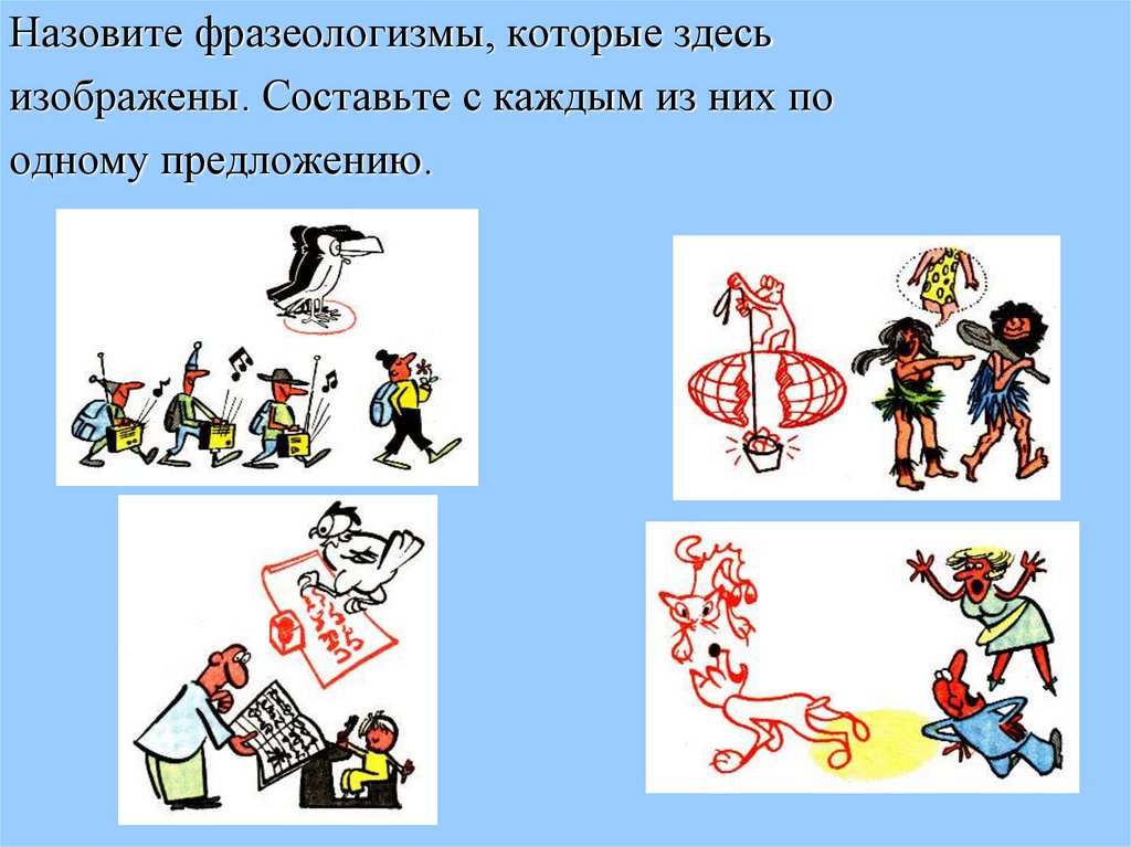 Назовите фразеологизмы, которые здесьизображены. Составьте с каждым из них по