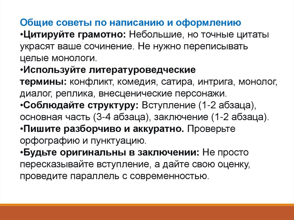 Общие советы по написанию и оформлению•Цитируйте грамотно: Небольшие, но точные цитаты