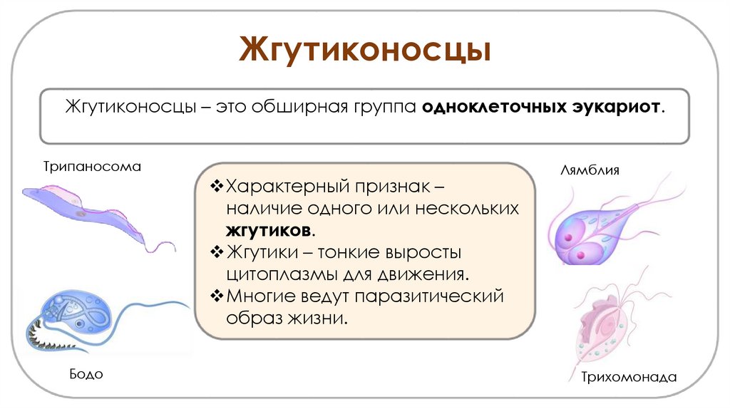 ЖгутиконосцыЖгутиконосцы – это обширная группа одноклеточных эукариот.
