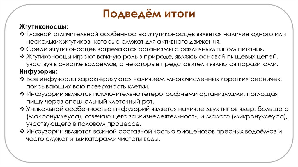 ЖГУТИКОНОСЦЫ И ИНФУЗОРИИ8 класс
