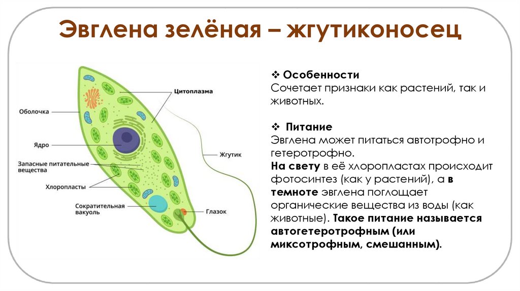 Среди жгутиконосцев встречаются организмы с различным типом питания.