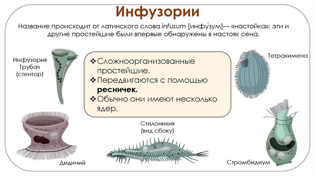 ИнфузорииНазвание происходит от латинского слова infusum [инфу́зум]— «настойка»: эти и