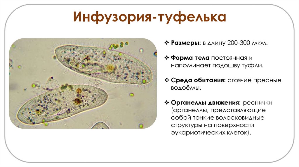 Инфузория-туфелькаРазмеры: в длину 200-300 мкм.