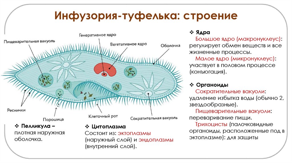 Уникальной особенностью инфузорий является наличие двух типов ядер: большого