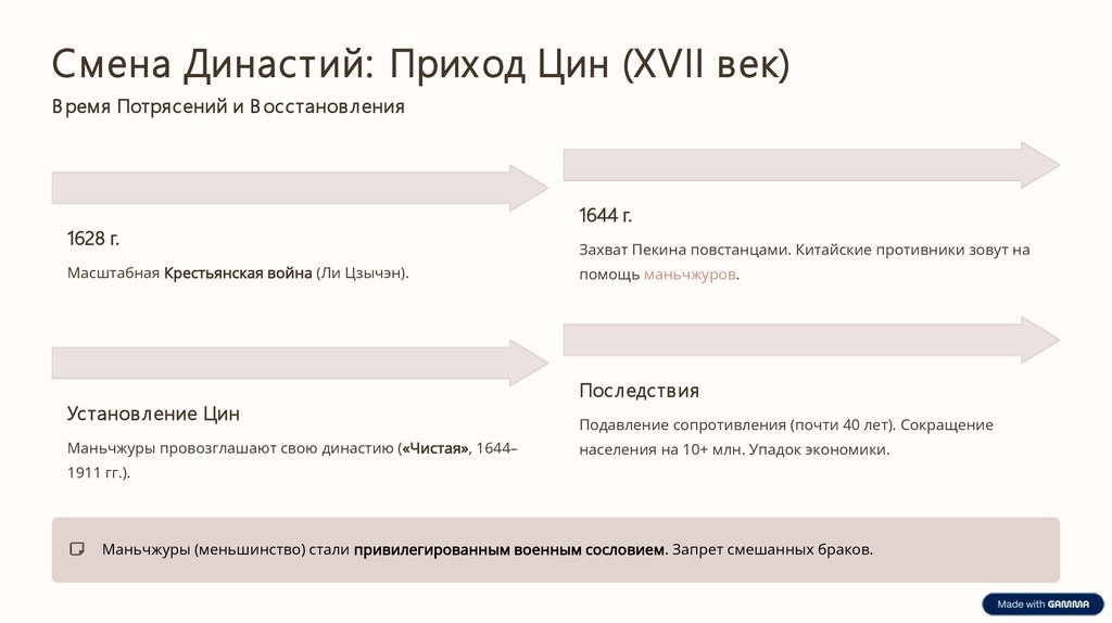 Смена Династий: Приход Цин (XVII век)В ремя Потрясений и В осстановл ения