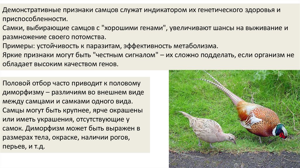 Демонстративные признаки самцов служат индикатором их генетического здоровья иприспособленности.