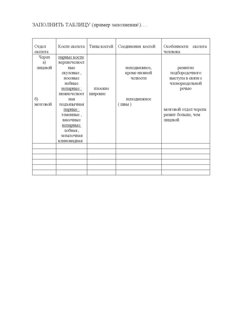 ЗАПОЛНИТЬ ТАБЛИЦУ (пример заполнения\)….Отдел