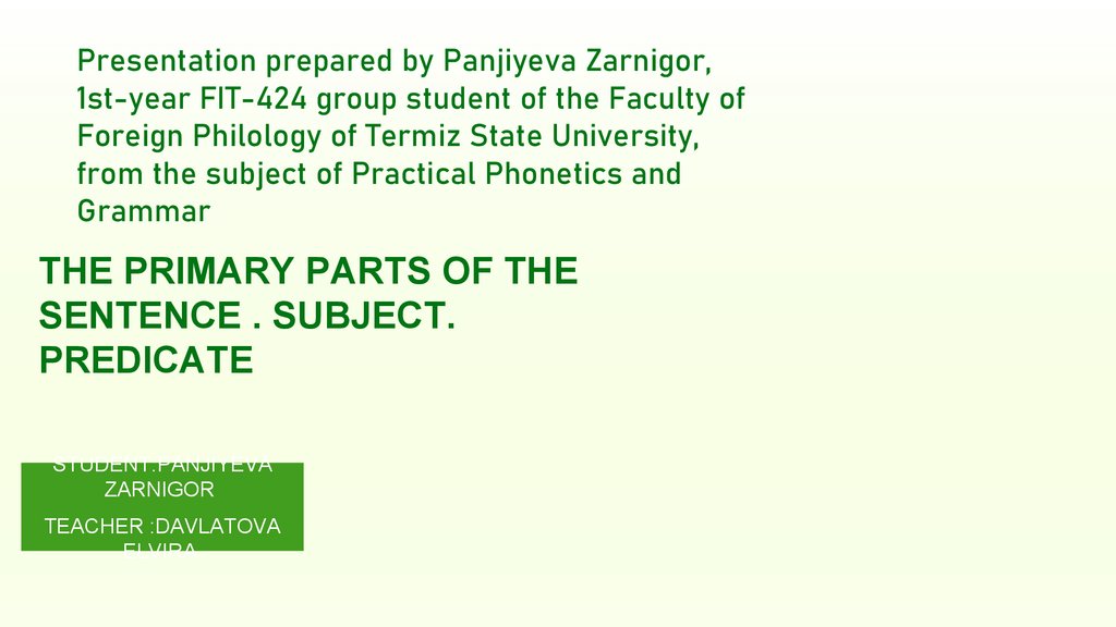 Presentation prepared by Panjiyeva Zarnigor,1st-year FIT-424 group student of the Faculty of