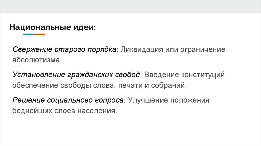 Национальные идеи:Свержение старого порядка: Ликвидация или ограничение